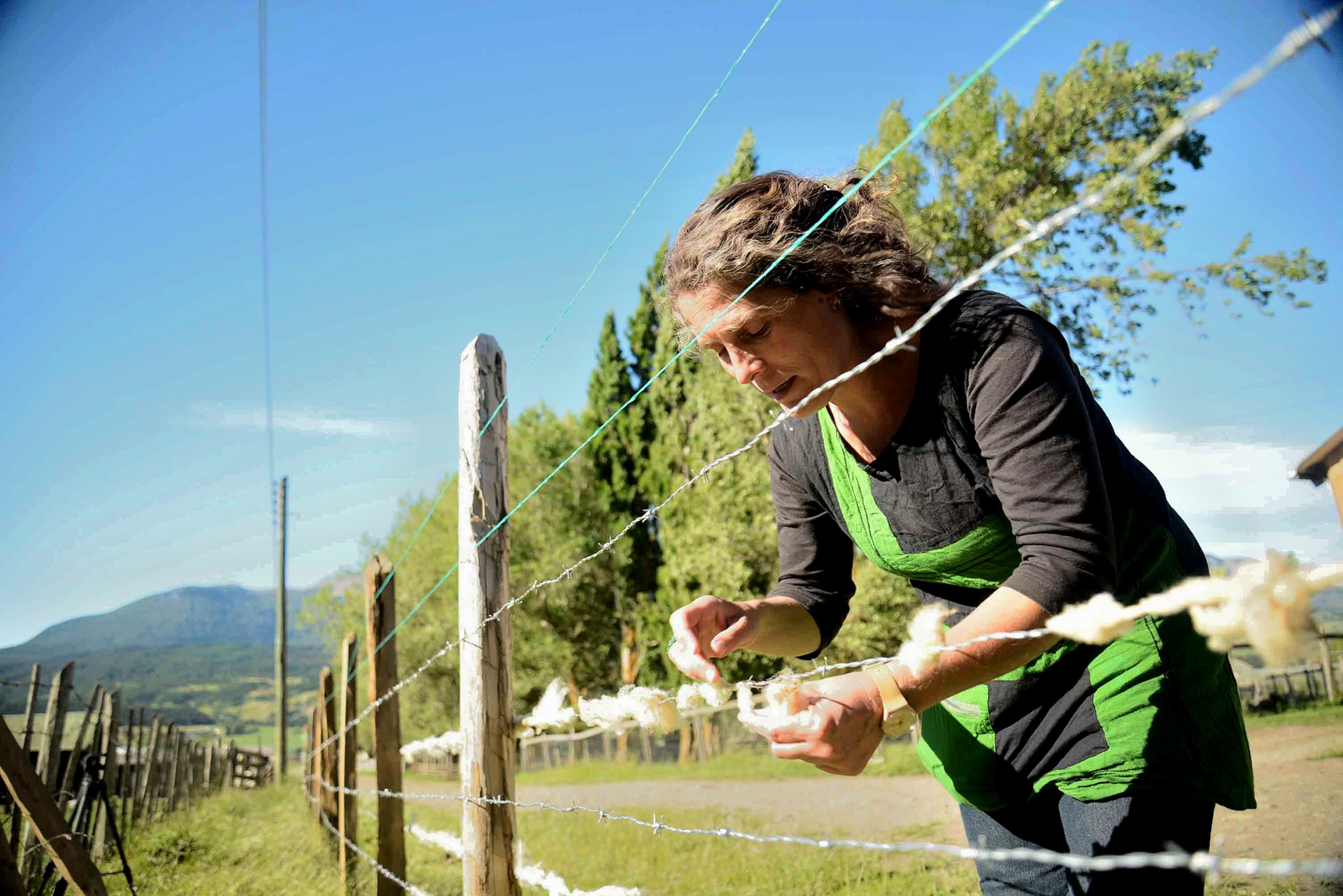 Cerco de Tusón, Estacas de ciprés de las Guaitecas, alambre de púa y lana, 20 metros lineales. Escuela Agrícola de Coyhaique, Región de Aysén, Chile. 2013.