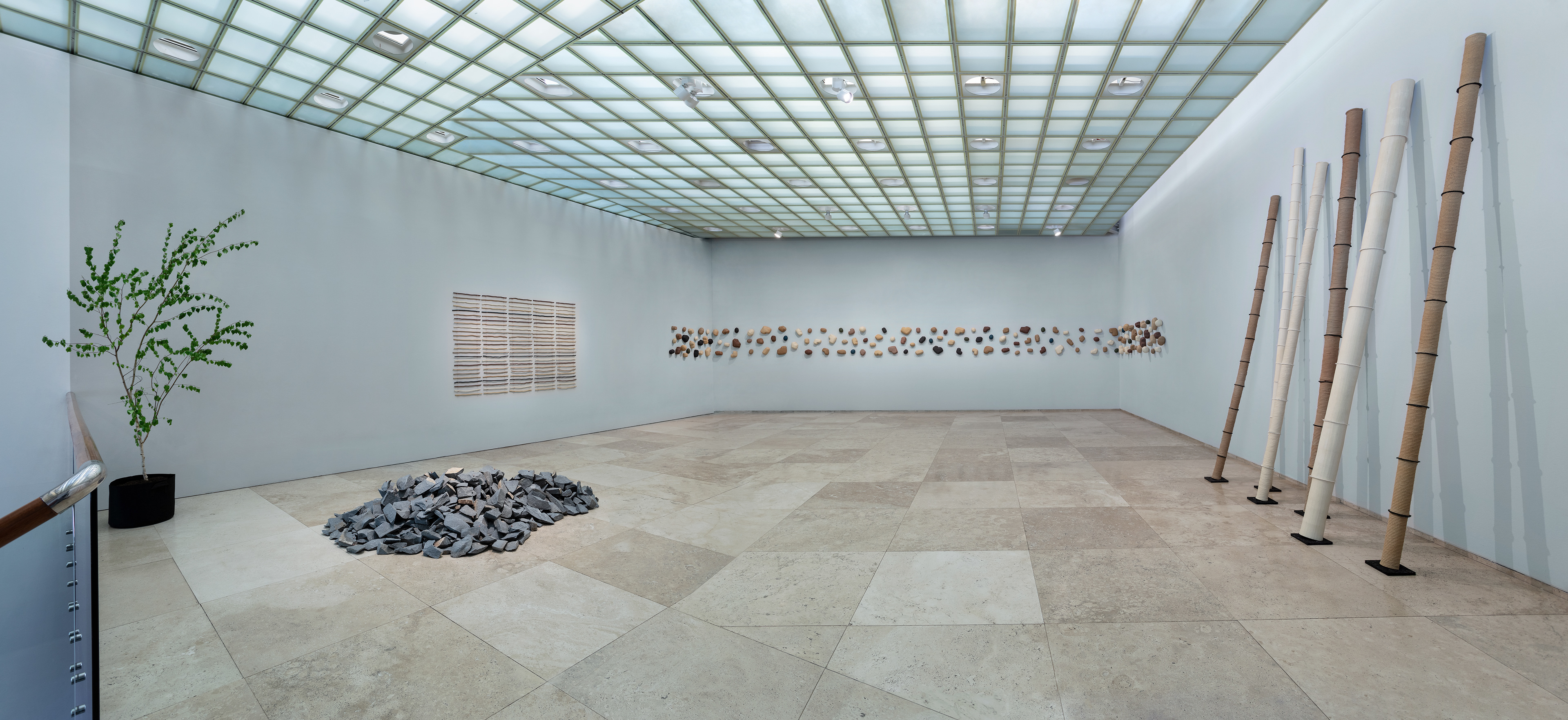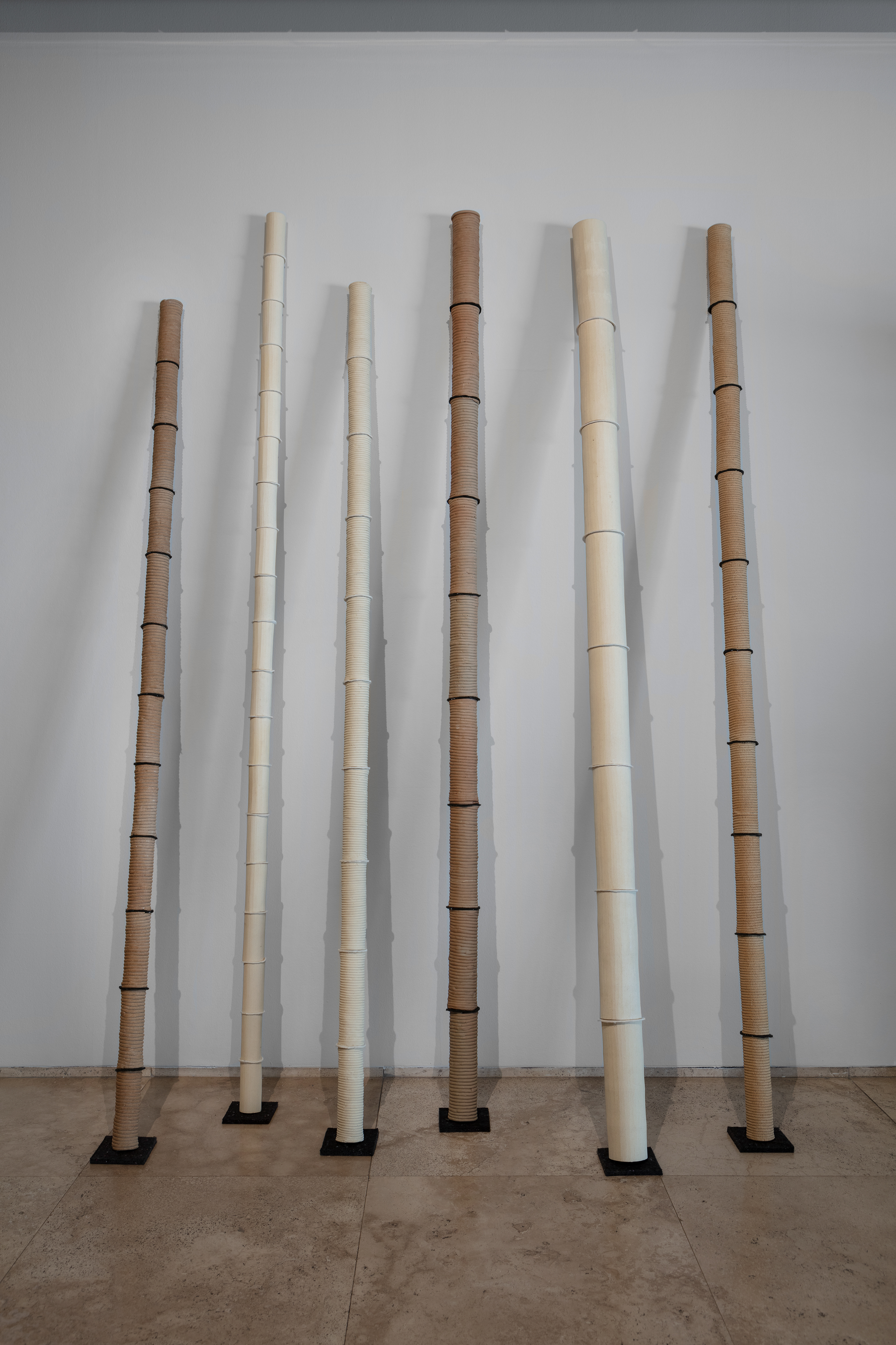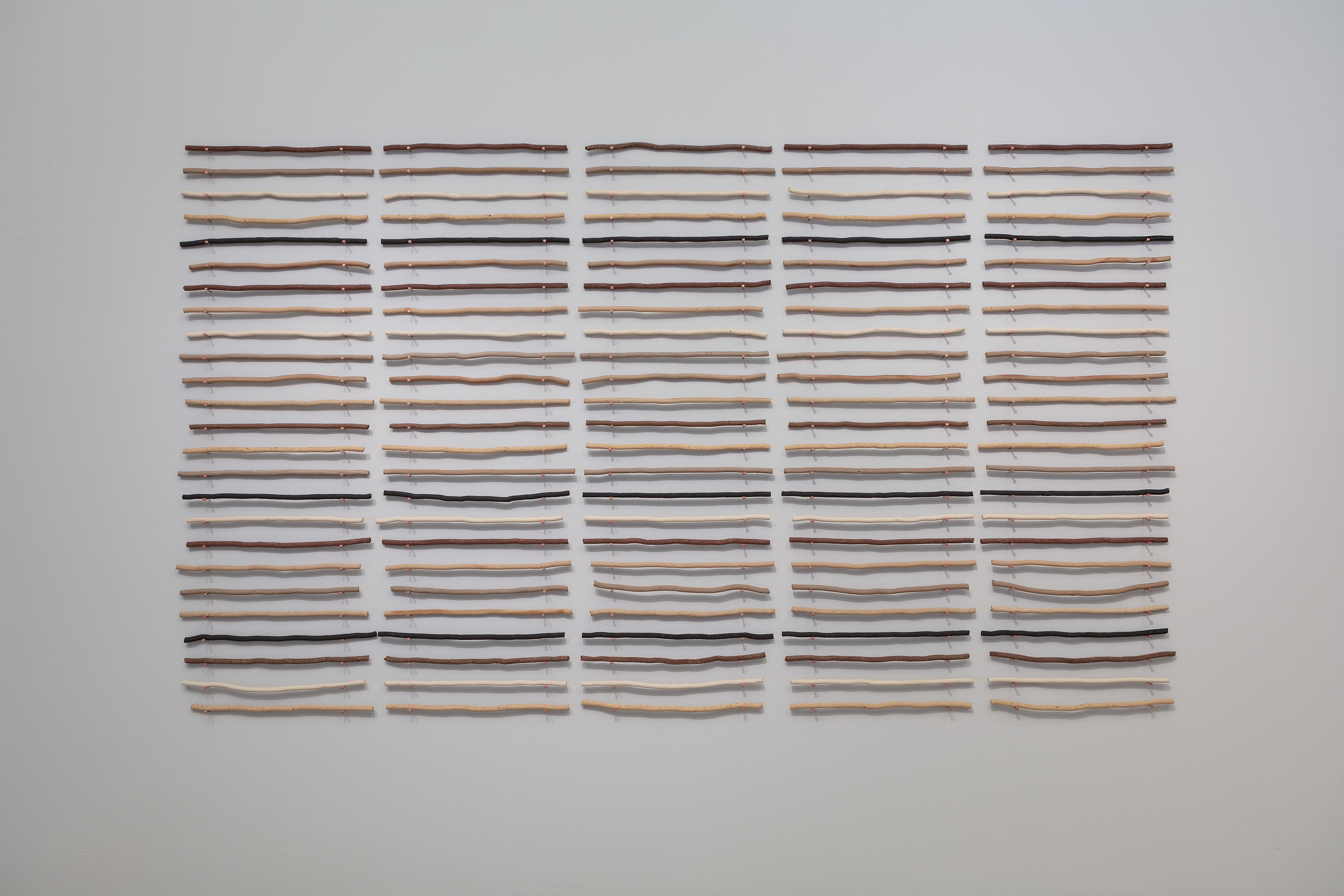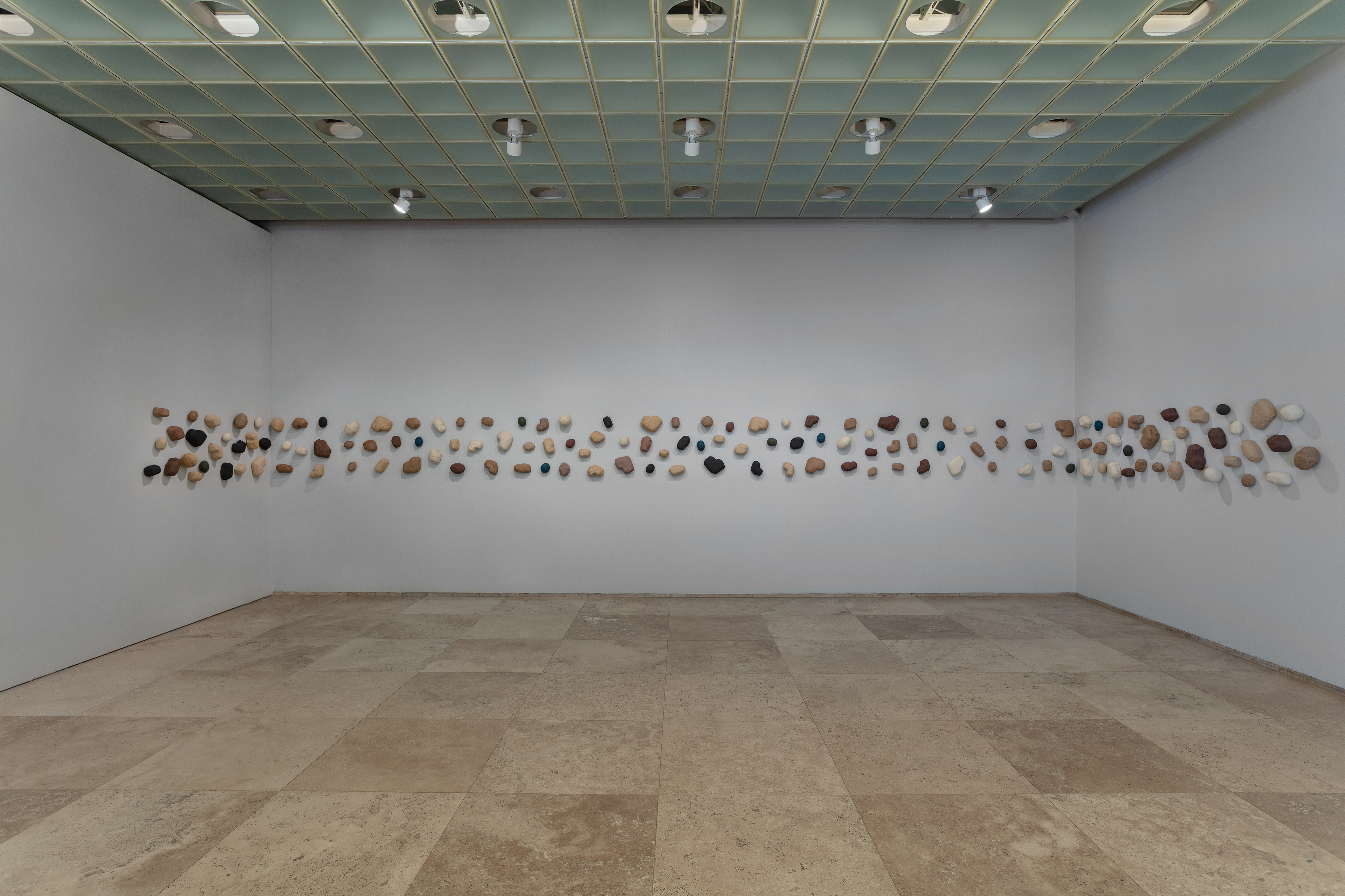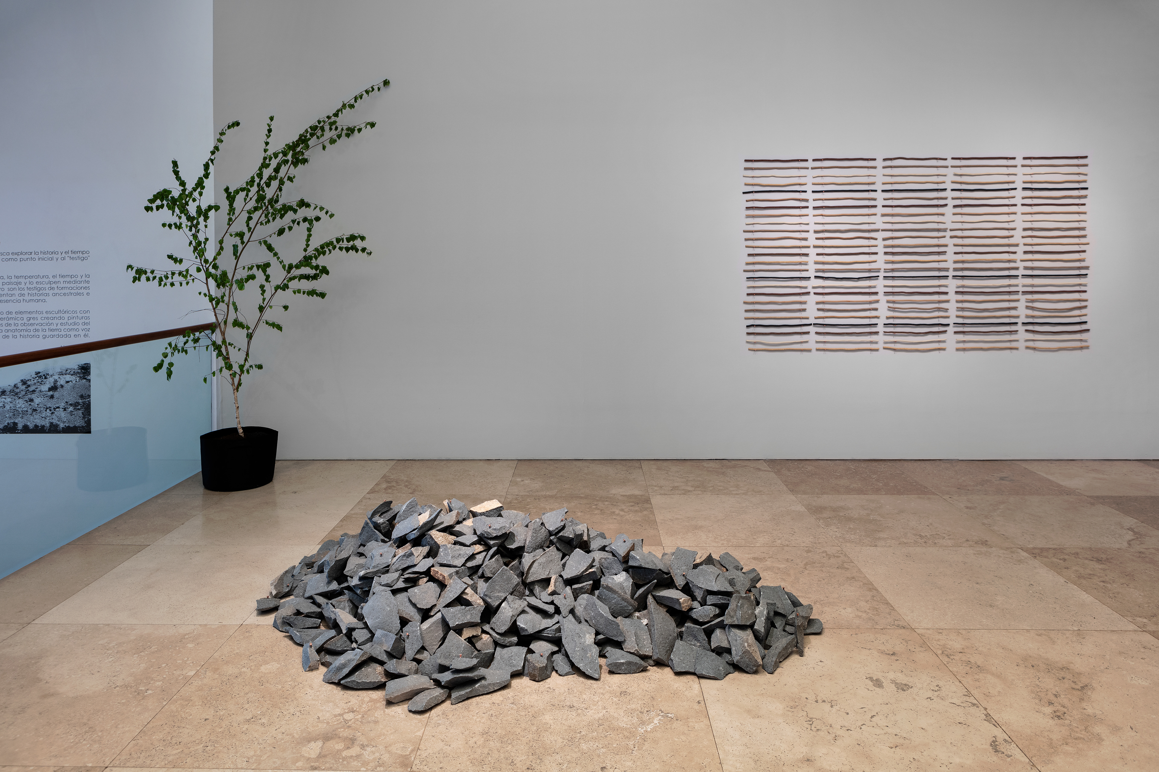 Esta instalación hace uso de elementos escultóricos con formas orgánicas en cerámica gres creando pinturas expandidas provenientes de la observación y estudio del paisaje, que refieren a la anatomía de la tierra como voz y contienen el silencio de la historia guardada en él.