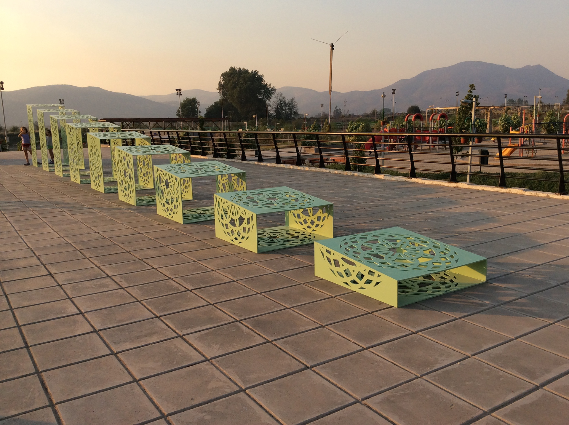 Fractales de coliflor. Estructura de acero, pintura poliuretano. Parque San Miguel, Colina, Santiago, Chile. 2013.